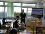 校長が2年道徳の授業に参加して、校歌に込められた思いを伝えました。本校の校歌がすごいところを2つ話しました。