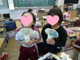 2年生が国語の授業で文章をもとに、紙コップ花火を作っていました。上手にできたので、記念撮影しました。