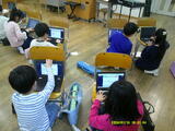 2年算数では、かけ算を上手に使いながら、数を求める学習をしています。タブレットを活用して一生懸命取り組んでいます。
