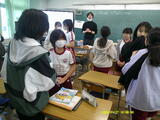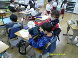 3年「重さ」の学習では、1㎏を超える重さの表記について学習をしました。そのあと、実際にいろいろなものをはかりで計測しています。実際の重さを測る前にどのくらいの重さかを予想して意欲的に取り組んでいました。