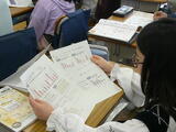 2年生が「自分の成長を支えてくれた人」について考えていました。まずは考えをプリントに書き出しています。分からないときには積極的に教師に聞きに来ていました。
