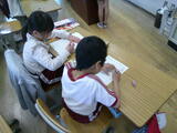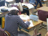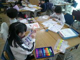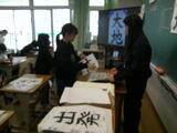 4年書写では、「大地」という文字を力強く書いていました。ポイントをおさえ、丁寧にお手本を見ながら取り組んでいます。