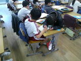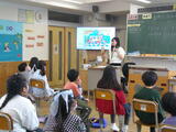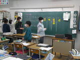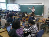 5年総合的な学習では、それぞれの国の大使になって紹介をするための準備活動を行っていました。中間報告の授業で、お互いに紹介しあって、発表をよりよいものにしようとしていました。