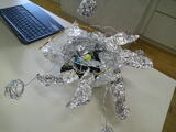 5年図工「美しく立つ針金」では、想像力豊かに作品を作り上げました。写真の作品題は「ブラックホール」です。別の角度から見るとどう見えるかということにこだわって仕上げていました。