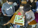 3年図工では、理科の磁石の学習を生かして、ゲームづくりをしました。お互いに引っ張る力や反発する力を上手に利用して工夫したゲームを作り、楽しく遊んでいます。どの顔も笑顔でした。