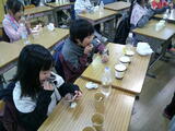 2年生の歯磨き指導の様子です。養護教諭が担任とともに、赤染液を使って自分でよく磨けているか確認しました。なかなか磨きづらいところをどのように磨くと良いか、学習をしました。