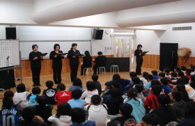 約300人収容できる視聴覚室では、縦割りミニコンサート・朗読発表会などさまざまな形で利用されています。