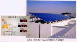 ソーラーパネル。学校で使われる電気の約10分の1をまかないます。